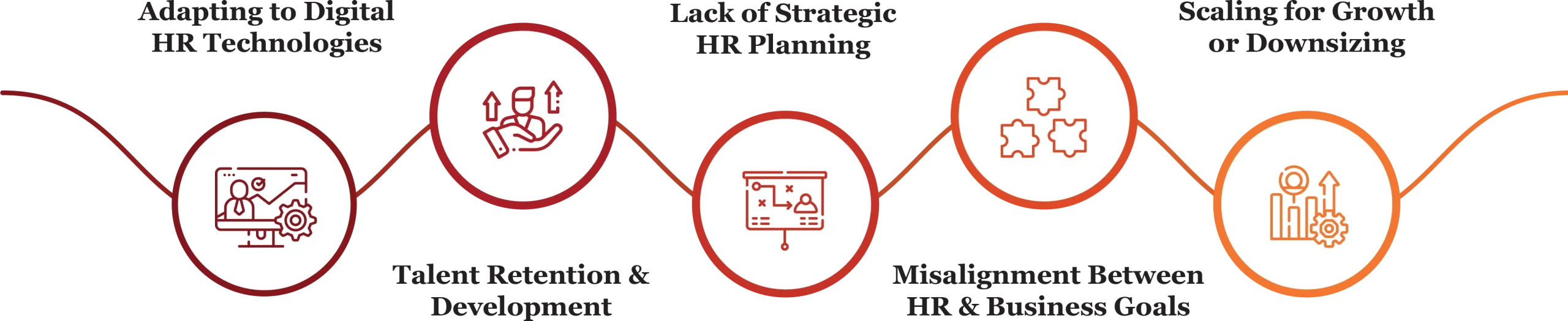 Scaling for Growth or Downsizing: Growing companies often lack the infrastructure or guidance needed to expand efficiently, while downsizing can damage morale without expert human capital consulting to guide transitions.